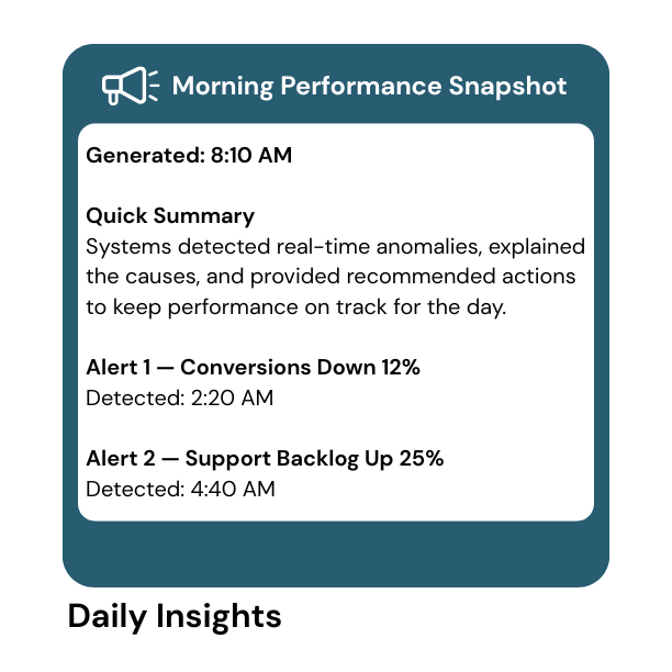 Gain accurate, explainable, and compliant insights with faster cycles, proactive alerts, and unified metrics for every team.