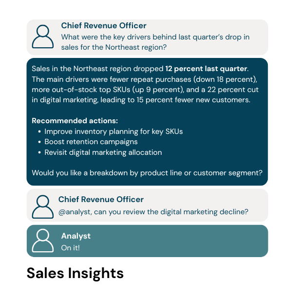 Empower your business with conversational analytics, automated agent playbooks, and real-time, actionable insights, all in a secure, collaborative workspace.